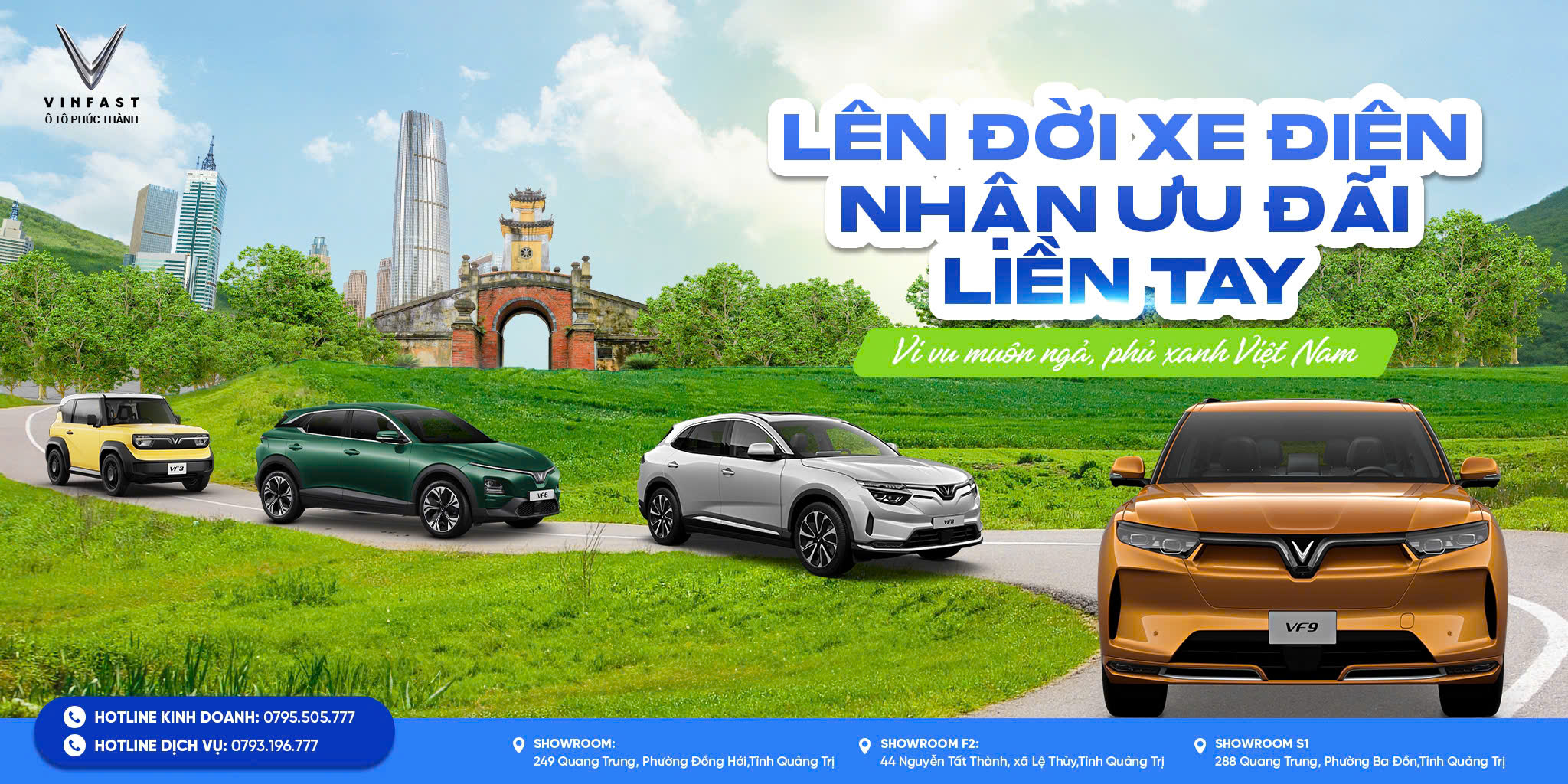 VinFast Ô tô Phúc Thành là nhà phân phối chính hãng sản phẩm ô tô VinFast duy nhất tại Quảng Bình với uy tín vàng và quy mô bậc nhất khu vực.